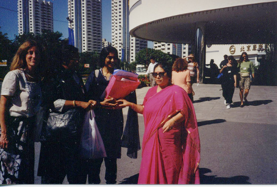 Eva Quistorp meeting with my old friend Vandana Shiva from India at Beijing airport 1995 for UN women conference